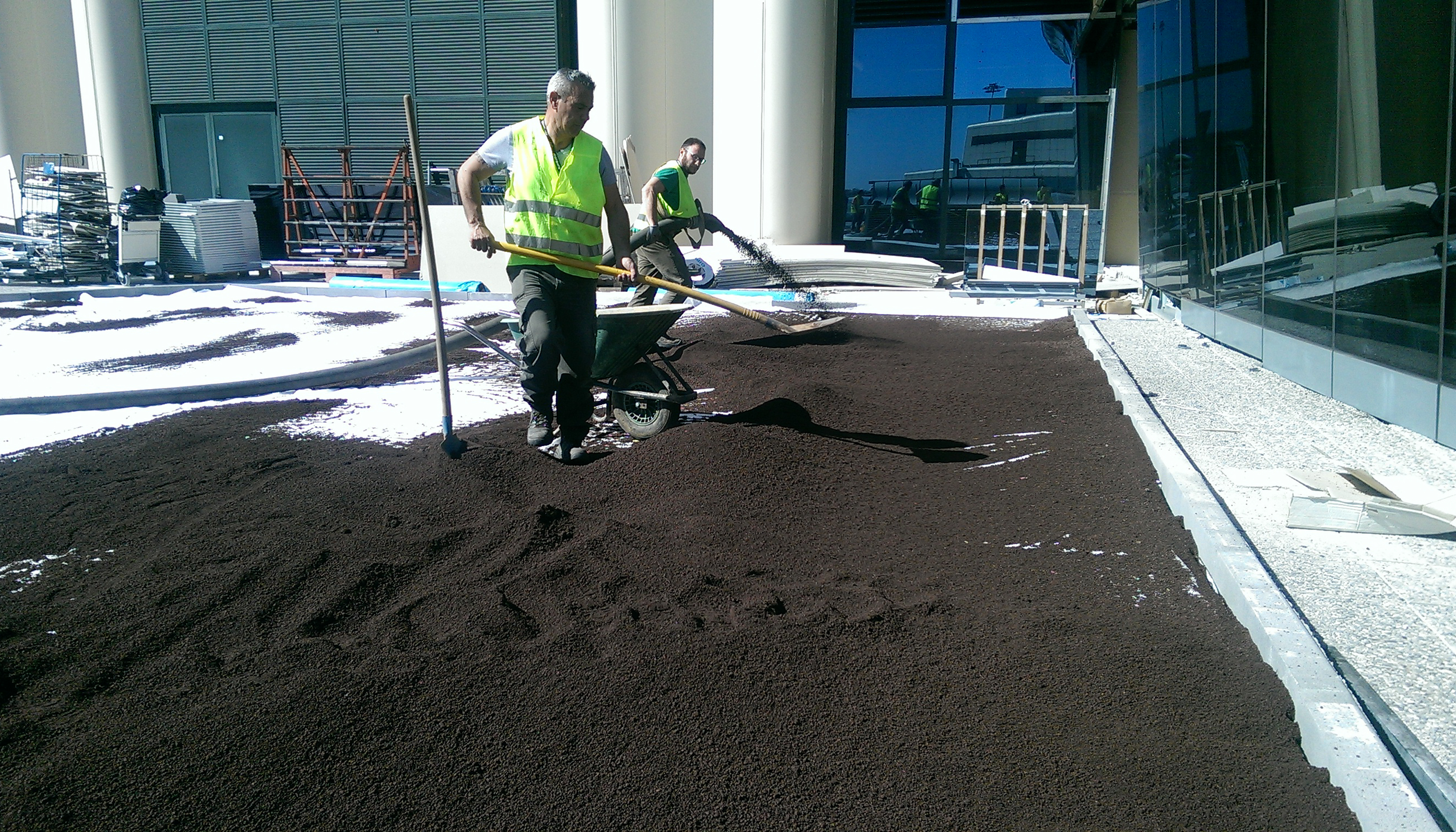 For some areas within the Malpensa project were used about 100 m3 of lightened soil with expanded clay, lightweight substratum for roof gardens, made of special mixture of crushed expanded clay, mineral aggregates and organic components carefully selected and characterized by lightness, excellent porosity, good water retention, good drainage capacity, resistance and structural stability in time. The product meets the requirements of UNI 11235 and presents an ideal support for the development of plants and ensure its proper nourishment.