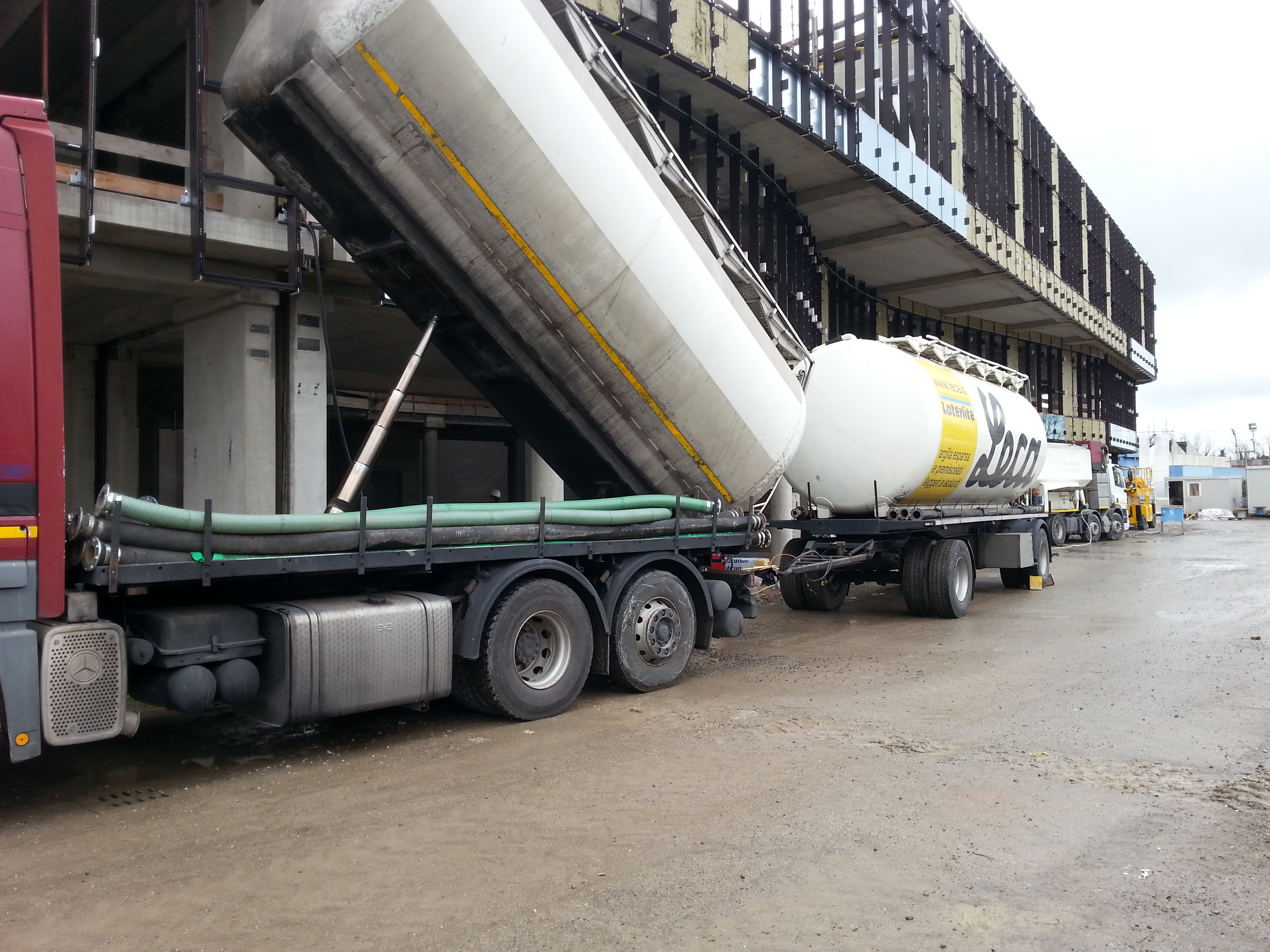 The underground parts of the buildings must be adequately insulated to reduce heat loss into the ground. So a special type of expanded clay that is hydrophobic and does not retain water is used in granular form for quickly creating an insulating layer which is also very effective against rising damp. The expanded clay is laid loose and simply levelled to the thickness desired. The topmost granules of the layer are fixed with a cement slurry to make the surface easy to walk on for completing the job.