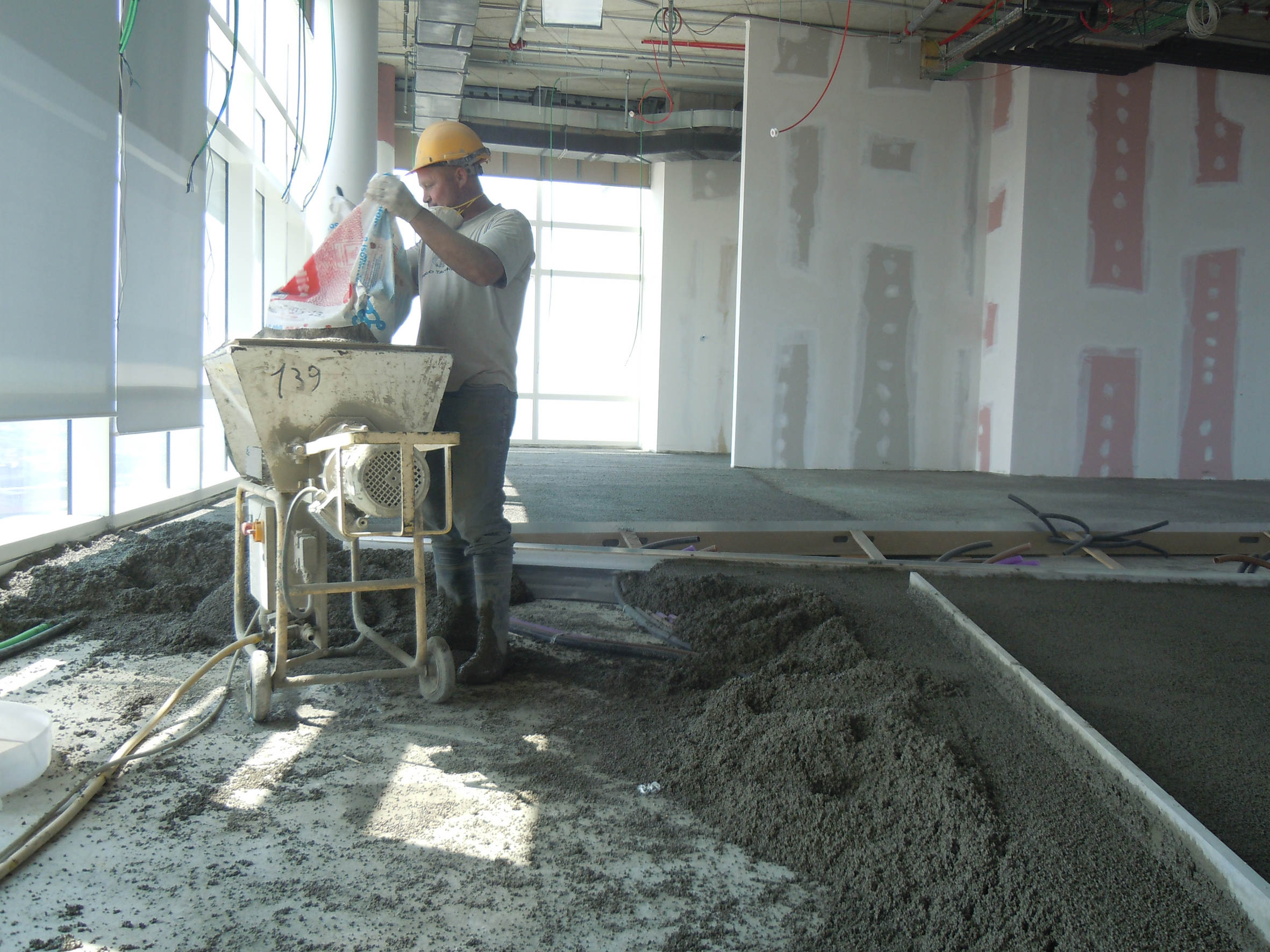 Expanded clay is used on the intermediate floors to incorporate electrical and water services keeping the structural weight low. The substrate is made of a lightweight premixed with expanded clay and sand / cement mix. Also for the floor finish a lightweight insulation top screed is required. Expanded clay screeds are been chosen for lightness, resistance and quick-drying at the same time with the convenience of a pre-mixed material.