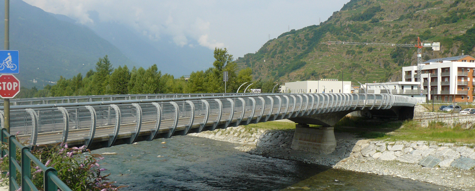 The new bridge over the river Mallero in Sondrio is designed to improve traffic in the capital of the Valtellina area of the city of recent urban development. The structure is characterized by the particular structural setting of the bridge decks which make the two spans, each of a lenght of 50 m. These, in fact, are constituted by concrete plates prestressed in work with post tensioned cables, from 1.15 to 2.8 m but variable thickness, which form two almost symmetrical spans and connect two roads crossing the new residential area.