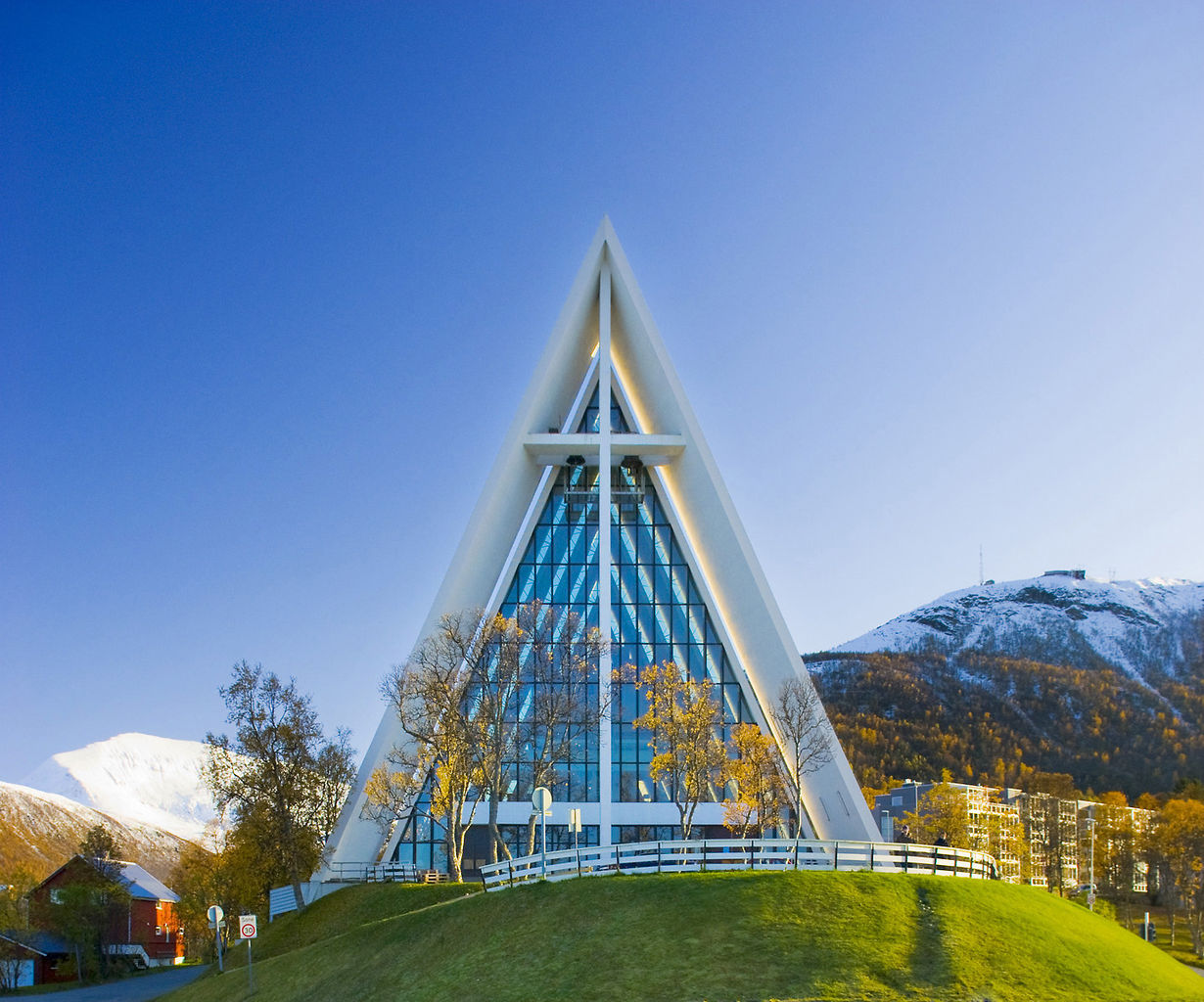 Situated in the city of Tromsø and surrounded by the breath-taking Tromsdalstinden mountains, the Polar Sea Cathedral is one of the most famous tourist attractions in northern Norway. The cathedral was constructed in the mid-sixties and the special roof and main structure consists of lightweight concrete.