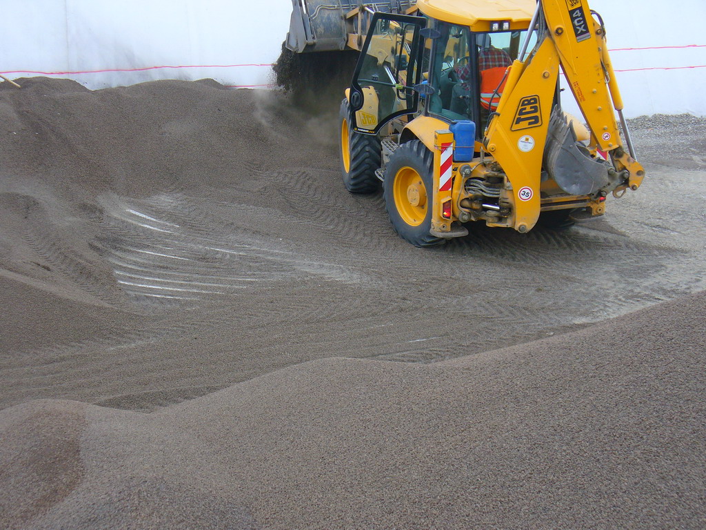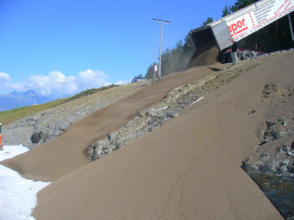 Using expanded clay means less weight, simply application, less efforts for compacting and therefore less dynamic load for the construction. Resistances against freezing and humic acid are additional ideal features for greening. By driving directly on and distributing the material with caterpillars it was easy to handle and to reach the right stabilization.