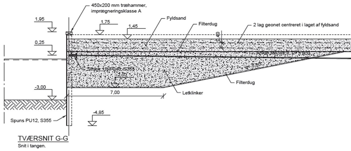 The choice to use expanded clay is an effective material for this type of projects, which is also known from similar harbour projects in Denmark and around the World. Expanded clay permanently steeped in water will absorb water and over time the filling will balance with densities close to 1 kN/m3. This means a reduction in loads on the subsoil compared regular fill materials. Expanded clay are well known to both the designer and the contractor.
