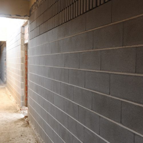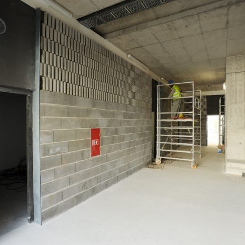 The project is a public school. Two types of lightweight concrete blocks were used in the project: the walls that separate the amphitheatre from the other spaces were built with a special block with high performance in airbourne sound reduction (53 dB), in the Entrance Hall a wall was built with a block with a special design (with Helmutz chamber) that permits sound absorption, decreasing the reverberation time inside the Hall. In the corridors, both blocks were used in order to insulate the classrooms and for acoustic correction inside the corridors.