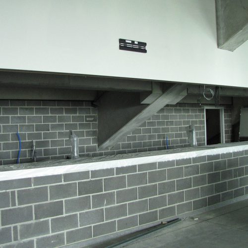 Light weight blocks were necessary for the construction of the stadium. Expanded Clay blocks were used for party walls because of their high acoustic performance. The size of aggregates used within the blocks was adapted for aesthetic benefit.