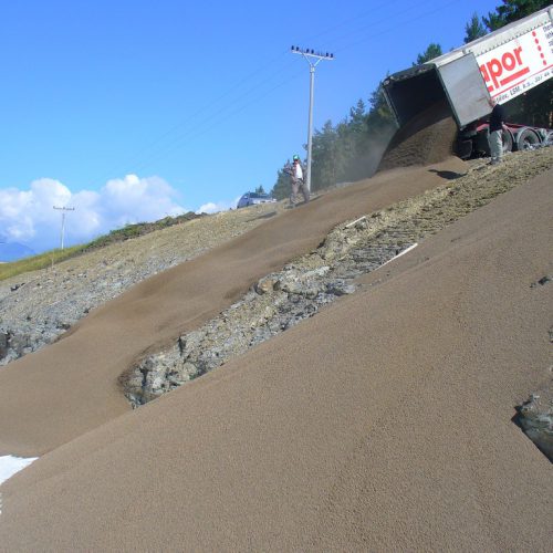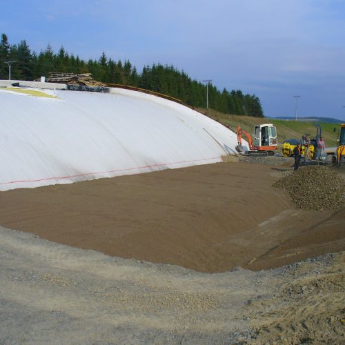 Using expanded clay means less weight, simply application, less efforts for compacting and therefore less dynamic load for the construction. Resistances against freezing and humic acid are additional ideal features for greening. By driving directly on and distributing the material with caterpillars it was easy to handle and to reach the right stabilization.