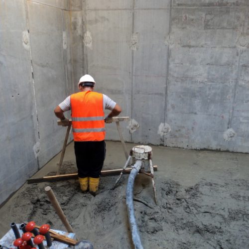 Because of the important dimensions of pontoons, long about 70 m, about 36 m wide and high about 8.70 m, the weight of each individual element (about 18,000 t) is decisive for their flotation, necessary for their transport from the area of the construction site to the bottom of the harbor mouth. The lightweight technical solution could not be separated from the component strength, necessary to implement the general static functions; then the aim of the designers was to identify a concrete mix that could combine lightness and resistance. The Lightweight concrete was used for the construction of some pontoons for the structure of the boxes (density about 1800 kg/m3 and average compressive strenght about 35 MPa) and for the construction of internal galleries into the pontoons, two per element, place in work in the thickness of about 40 cm to the entire length (approximately 60 m) through pneumatic pumping to facilitate and speed up the executive activities (density lower than 1500 kg/m3 and average cubic compression greater than 18 MPa).
