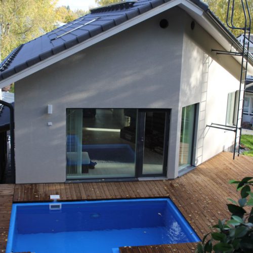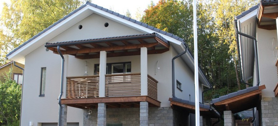 Easy to design, good thermal insulation and comfort, easy to build, good load bearing capacity. U-value of the wall is 0,12 W/m²K. With sandwich blocks the builder will get a readily insulated wall and a good surface for rendering. Well suitable also for winter masonry. The construction site was on a slope and there was little space on site. The advantages of expanded clay blocks were highlighted due to the flexibility of the units, which are easy to handle.