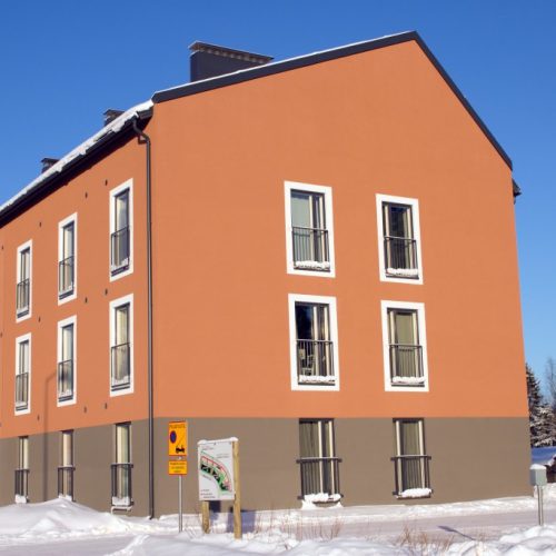 Three blocks of flats with 96 small departments over three storeys. All loadbering and non loadbearing walls were built from expanded clay blocks. Only the elevator shaft was built from concrete blocks and concrete. Very well insulated house with low energy concumption. The U-value achieved in the walls was 0,15 W/m2k. These multifamily housing units in Sipoo demonstrate that quality blocks of flats, which are professionally executed and economical, can be built using expanded clay sandwich blocks.