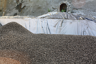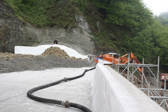 The choice was to achieve a filling with expanded clay 8-20 blown: in this way it was possible to ensure the ongoing transitability of the road, blowing also allowed economic savings by avoiding more expensive methods of transport of the aggregates traditional (helicopter) and of course the reduction of permanent loads due to the lightness of expanded allowed a sizing easier gallery.