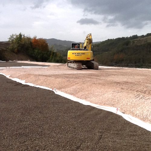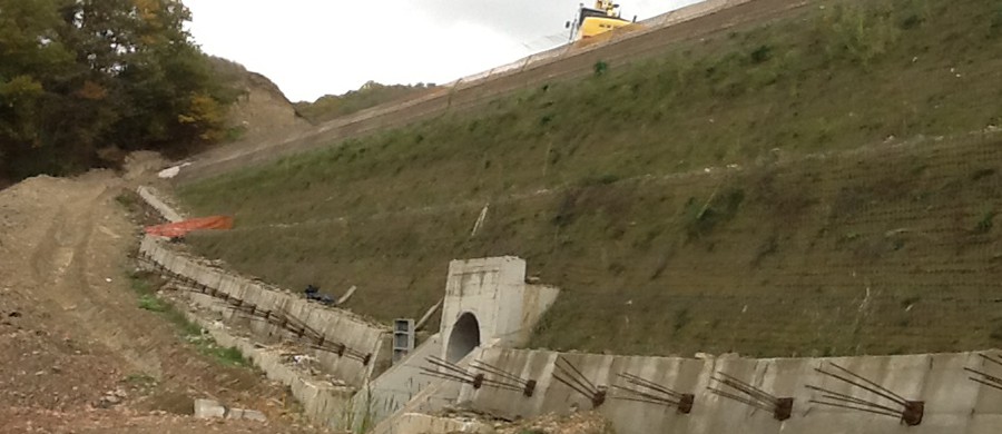 The route for a new road ss 318 km between km 13 and 17 near Valfabbrica (PG) passes through a mountaineous area with risk of landslides. In one of these areas, the design engineers decided that the best solution was to create a lightweight embankment with expanded clay reinforced with geogrids.