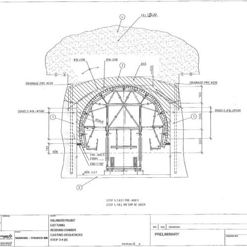 A railway tunnel build with precast concrete elements was produced through altered and weathered bedrock. The fractured and metamophosed rock did not leave a peferct round hole after drilling. Big parts of the rock fell down in the tunnel cieling leaving up to 6m of cavities between the prefabricated tunnel elements and overlaying rock. To protect the concrete tunnel and prevent further rockfall the empty space above the tunnel needed to be filled out.