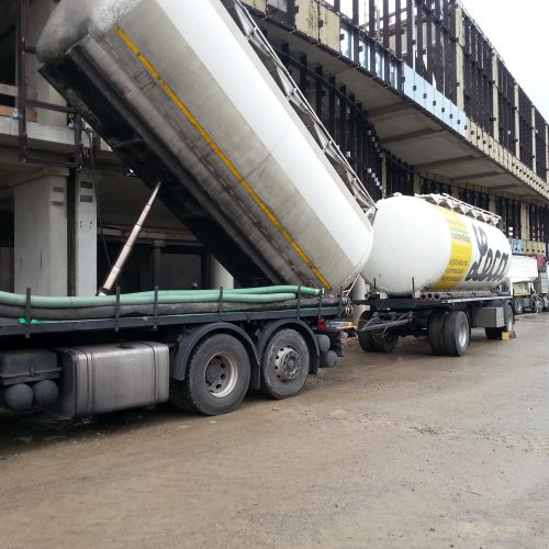 The underground parts of the buildings must be adequately insulated to reduce heat loss into the ground. So a special type of expanded clay that is hydrophobic and does not retain water is used in granular form for quickly creating an insulating layer which is also very effective against rising damp. The expanded clay is laid loose and simply levelled to the thickness desired. The topmost granules of the layer are fixed with a cement slurry to make the surface easy to walk on for completing the job.