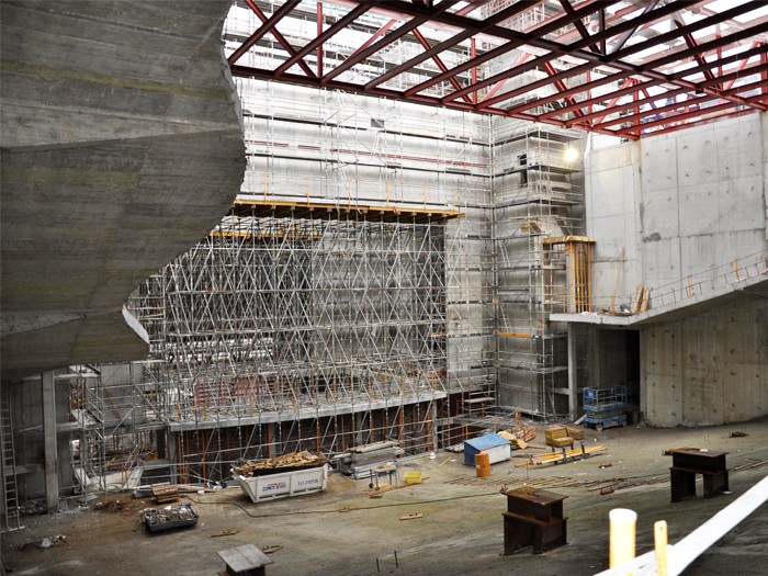 The project is a music school. The types of lightweight concrete blocks used were solid for sound reduction.