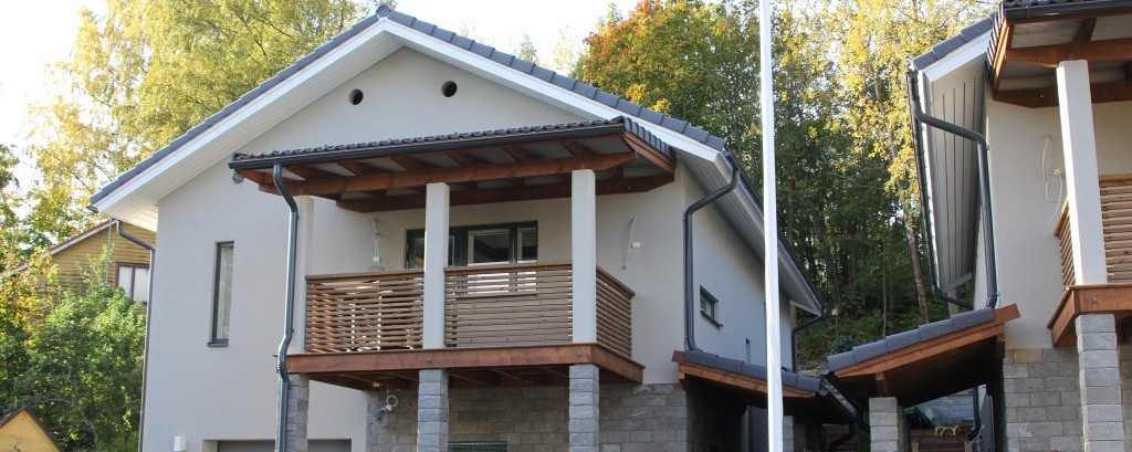 Two separate single family homes. Typical one family house built from insulated expanded clay blocks for external walls and expanded clay blocks for internal partitions. Blocks were used also in the basement construction and foundations of the house. This is a low energy house, where the whole building envelope is well insulated and air tight. Effective heat recovery from the ventilation system saves energy and guarantees good indoor air quality.